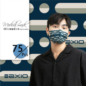 AXIO 3D立體醫療口罩-成人75入/共三盒25入(調節扣可調整耳帶鬆緊)SET-MA02-藍條紋