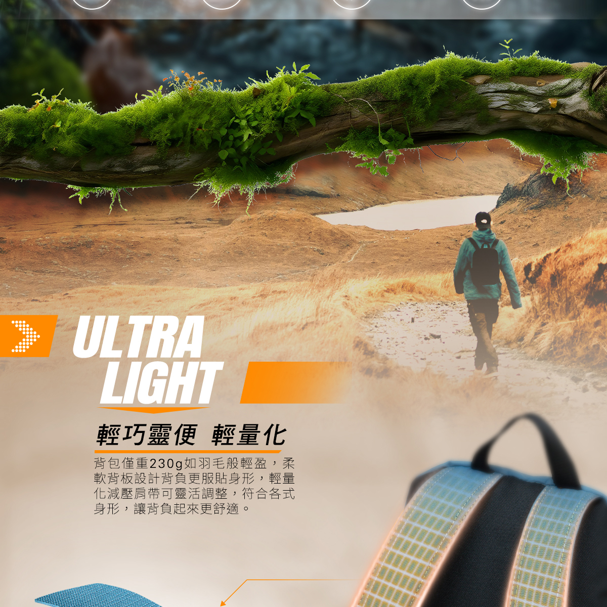 僅230g的超輕後背包,再爬山與健行中能夠輕鬆無負擔! 盡情的享受週末生活!