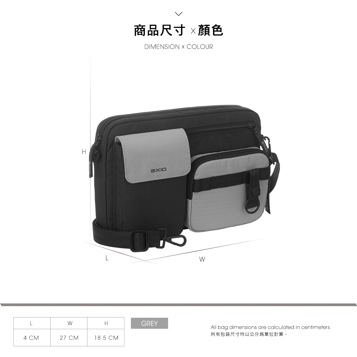 AXIO Outdoor Shoulder bag 休閒健行側肩包(AOS-4)灰色