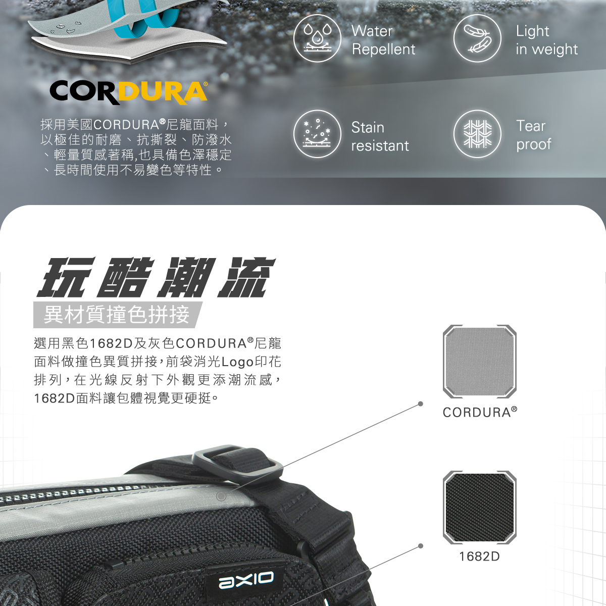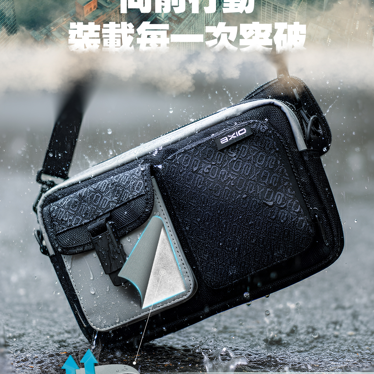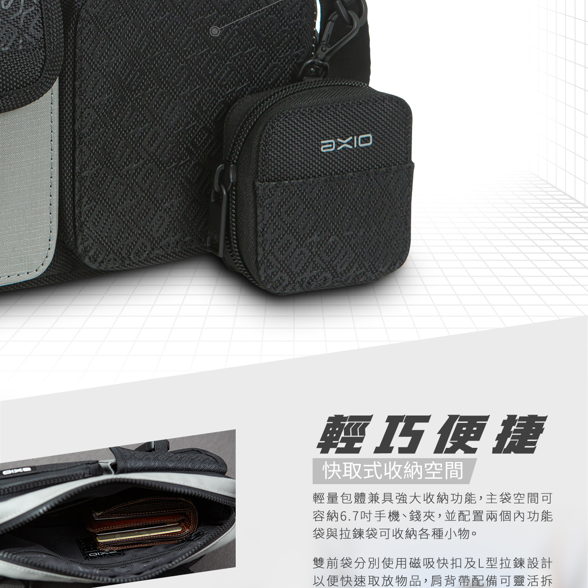 AXIO頂級快取耐磨抗撕裂側肩包特別針對休閒外出,時尚潮男設計的包款,另附時尚小包方便您攜帶AirPods耳機,更添加了德國專利 FIDLOCK 快扣系統,絕對是外出走跳的最佳首選!
